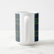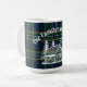 Genießen Sie Ihren Lieblings-Tee und Kaffee mit rustikalem Charme in dieser personalisierten Keramik Tasse. Mit einer handgezeichnet Blockhütte zwischen Kiefernbäumen und einem Sonnenmotiv besticht dieses Design durch einen karierten, grünen und blauen tartanischen Hintergrund - ideal für Zuhause, Seehütten oder Waldlandschaften. Fügen Sie Ihren Familiennamen hinzu, um ihn zu einem einzigartigen Sake oder einem herzlichen Geschenk zu machen. Eine warme und einladende Ergänzung zu jeder Teezeit oder Kabine Küchendekoration.