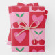 Das sind niedliche Kirschen mit rosa Herzmustern auf roten und hellrosa Schachbrettern.