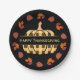 Karierte Kürbis und Herbstlaub Pappteller