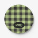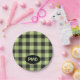 Karierte Monogramm-Initialen von Lime Green Black Pappteller