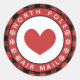 Niedlicher rustikaler Weihnachtsaufkleber für Ihre Weihnachtsbriefe und -karten mit rotem Herz. Roter Büffel-Karo. North Pole Air Mail geschrieben in kurvigem Text mit Schneeflocken.