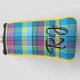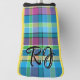 Ein buntes, gemustertes Blau, Grün, lila, Türkis und Gelb, kariert, um Ihre Golfausrüstung und Golffahre Accessoires zu personalisieren.
