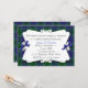 Elegante, maßgeschneiderte karierte Hochzeit-Probe Dinner Einladung. Ein dekorativer weißer Textbereich liegt über dem karierten Hintergrund des schottischen und blauen Clans. Die beiden Seiten des Textbereichs sind mit hübschen kleinen blauen Bögen geschmückt. Personalisieren Sie den Text so, dass er Ihren Bedürfnissen des Party entspricht.