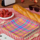 Karierte Retro-Teller mit Inspiriertem Muster in P Pappteller