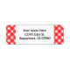 Benutzerdefinierte Rücksendeadressen-Aufkleber mit einem karierten Retromuster in Rot und Weiß mit Blockbuchstaben. Passen Sie es an, um Schriftart, Größen, Hintergrundfarben zu ändern, sogar Ihr Design für später retten.