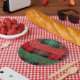 Feiern Sie die Urlaubssaison mit diesen festlichen Tellern. Sie zeichnen sich durch ein kariertes, rotes und grünes Muster aus, mit Glitzer-Streifen in Rot und Grün von Imitaten.