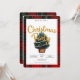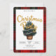 Diese Karte ist für eine Weihnachtsfeier Party Einladung. Es zeichnet sich durch ein festliches Design mit einer karierten Grenze in den traditionellen Weihnachtsfarben Rot, Grün und Schwarz aus. In der Mitte gibt es eine Abbildung eines Weihnachtsbaumes, der mit sanften, leuchtenden Saitenlichtern verziert ist. Der Text lautet **"Join us for a Christmas Party"** in fett gedruckter Goldschrift. Unterhalb des Baumes sind die Veranstaltungsdetails, einschließlich Datum und Ort, klar aufgelistet. Die UAWG werden am unteren Ende des Fensters bereitgestellt, sodass die Gäste gefragt werden können, bis zu einem bestimmten Termin zu antworten. Das Gesamtbild ist fröhlich, einladend und spiegelt den Geist der Urlaubssaison wider.