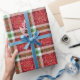 Karierte Weihnachtsferien in Rot und Grün - Glitze Geschenkpapier