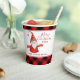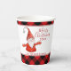 Erstellen Sie rustikale personalisierte Weihnachtsbecher für Ihr Party mit einem einzigartigen Rot-, Schwarz- und Weißdesign, das ein fröhliches Weihnachtsgeschenk-Sprichwort, niedliche Gnome und Text-Vorlagen für das Jahr und Familienname bietet.