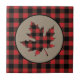 Der Hintergrund dieser festlichen Kachel ist ein kariertes rotes und schwarzes Büffel. In der Mitte befindet sich ein Banner mit einem bräunlichen Kreissymbol, das dem karierten Ahornblatt entspricht. Perfekt für jede Saison Ansammlung, oder das ganze Jahr hindurch. Schauen Sie sich die passenden Produkte in unserem Shop an.