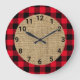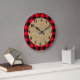 Karierter Burlap Circle von Red und Black Buffalo Große Wanduhr