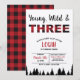 Young, Wild & Three! Diese karierte Einladung ist für einen dritten Geburtstag perfekt. Enthält rote und schwarze Büffel-Karo-Muster und Silhouette der Bäume. Einfach den Text für Ihre Kleine anpassen, um eine wirklich einzigartige Einladung zu erhalten. Ideal für ein Party im Herbst oder im Winter, einen Lumberjack, ein Abenteuer oder ein Outdoor-Thema oder einen Flanellkleid-up Bash.
