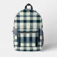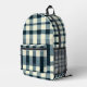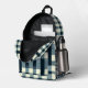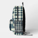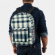 Einfache, aber haltbare Rucksack mit klassischem kariertem Muster in Blau, Weiß und Schwarz. Rustikales Flanelldesign mit Gingham-Schachtel-Details für eine zeitlose Lumberjack-Ästhetik.