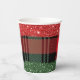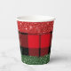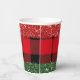 Feiern Sie die Urlaubssaison mit diesen festlichen Papiertassen. Sie zeichnen sich durch ein kariertes, rotes und grünes Muster aus, mit Glitzer-Streifen in Rot und Grün von Imitaten.