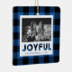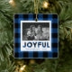 Dieser festliche Weihnachtsschmuck weist ein kariertes blaues Büffel mit Platz für ein Foto auf der Vorderseite sowie ein Foto auf der Rückseite auf.