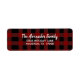 Dieses einfache, aber elegante Rücksendelabel zeigt unsere Namen und Rücksendeadresse in weiß und mit Buchstaben auf einem schwarzen und roten Büffel karierten Karo Hintergrund. Koordiniert gut mit anderen Elementen aus dieser Sammlung: