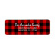 Dieses einfache, aber elegante Rücksendelabel zeigt unsere Namen und Rücksendeadresse in weiß und mit Buchstaben auf einem schwarzen und roten Büffel karierten Karo Hintergrund. Koordiniert gut mit anderen Elementen aus dieser Sammlung: