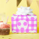 Fußball-Ball-Zeichnungen kariert rosa und weiß. Einzigartiges Design. Maßgeschneiderte Papierrollen zum Einwickeln. Party-Dekor.
