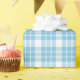 Umhüllungspapier mit hellblauen und weißen karierten Mustern. Passen Sie den weißen Hintergrund unter anderen Optionen an.