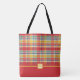 Diese karierte Tragetasche wird eine der beliebtesten Tragetaschen. Erstellt in farbenfrohen karierten Mustern von Primärfarben und rotem Kontrast. Personalisieren Sie einfach den Text des Monogramms im einfachen Zazzle-Editor. Ihre Wahl von zwei Stilen und Größen.