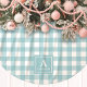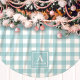 Kariertes Monogramm aus blauem Gingham und weißem Polyester Weihnachtsbaumdecke