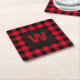 Kariertes Monogramm aus rotem und schwarzem Buffal Rechteckiger Pappuntersetzer