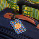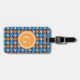 Kariertes Monogramm des Vintagen blauen Gepäckanhänger