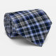 Diese moderne Krawatte weist ein buntes tartanisches (kariertes) Muster in Grautönen und Blautönen auf.
