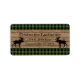 Schöne klassische Silhouette mit Elche und schwarz-grün-Buffalo Karo auf braunem, verwittertem Holzboden. Mit genügend Platz, um sich mit Namen und Adresse Ihrer Wahl anzupassen oder zu personalisieren. Verziertes, elegantes, stilvolles und eklektisches Design für den extravaganten angesagten Kunsthandwerker, Vintager Retro-Kunstmotiv-Liebhaber. Erhältlich bei einer Vielzahl moderner Büroprodukte. B. Adressetiketten, Verpackungen und Papiertaschentücher, Geschenktaschen, Beutel und Geschenkschachteln, Aufkleber, Bänder, Notebooks, Bindemittel, Schreibwaren und Umschläge.