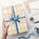 Kariertes Muster in orangegelben Pastellfarben Geschenkpapier