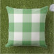 Das Kissendesign zeichnet sich durch ein lässiges Gingham kariert / Karo Muster aus, das sich perfekt für die Sommerzeit eignet! Beachten Sie, dass Sie die grüne Hintergrundfarbe des Blattbelags an Ihre Außendekoration anpassen können.