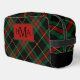 Schwarzes Kariertes Muster Monogram Dopp Kit in dunklem Gingham Rot, schwarz, grün mit fett mit Monogramm Initialen.