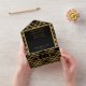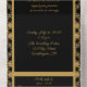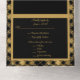 Eine sehr schöne und elegante Schwarz-Gold karierte Muster Hochzeitseinladung. Der Text ist goldfarben und Sie können den Namen und die Adresse auf der Antwort abreißen und eine Briefmarke für Ihren Gast hinzufügen, um es zurückzugeben.