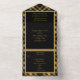 Kariertes Schwarz-Gold-Elegant All In One Einladung