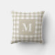 Kariertes Tan-Weiß-Gingham-Muster mit Monogram-Throw-Kissen
