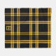 Diese karierte Tartan-Decke zeichnet sich durch ein gewagtes und klassisches Schwarz-Gold-Design aus und schafft ein warmes und stilvolles Ambiente. Die Schnittlinien bilden ein gitterartiges Tartan-Muster mit einer reichen Textur, die Raffinesse hinzufügt. Eine anpassbare Monogrammbox befindet sich unten, sodass die Initialen (derzeit "MW") durch eine eigene ersetzt werden können, was sie zu einem durchdachten Geschenk oder einem personalisierten Zuhause-Accessoire macht.