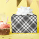 Dieses elegante, diagonal viereckige Verpackungspapier-Design zeichnet sich durch ein klassisches, schwarz-weißes schottisches kariertes Muster aus.