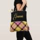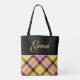Black Yellow Pink Kariert Tartan Personalisierter Name Tote Tag Moderne, elegante und trendige Tasche mit individualisierbarem Totapult "personalisierter Name" auf schwarzem Hintergrund oben und rosa / gelb karierte Tartan unten. Personalisieren Sie diese schöne Tasche als ein wunderbares Geschenk für eine Braut, Brautjungfrau, Lehrerin, Freundin oder ein Mitglied Ihrer Familie, indem Sie Ihren Namen oder Text / ändern Sie den Schriftart, Farbe, Größe und Position.