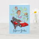 Das ist eine fröhliche Karte, um jedem Mann zu gratulieren, dass es gelungen ist, einen neuen Job zu bekommen. Es ist eine Karikatur eines Cartoon eines lächelnden Männchens, das in seiner cleveren Shirt-Krawatte und Hose gekleidet ist. Er hält ein silbernes Handy in der einen Hand und eine Wade Dollarnoten in der anderen. Er springt vor Freude und hat nicht bemerkt, dass er ein paar Dollar Scheine in seiner Begeisterung fallen gelassen hat. Hinter ihm steht ein glänzender neuer roter Sportwagen und ein Feuerwerk. Der Hintergrund ist grün und himmelblau mit einem türkisfarbenen Rahmen. Der neue Job-Text ist in farbenfrohen, hellen Farben. Das Bild ist mein eigenes aus einer freehand Skizze, manuell eingezeichnet und in Sketchbook Pro digital gescannt.