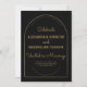Ein skurriler, spielerischer, einzigartiger goldkalligrafischer geometrischer, eleganter Goldbogen und Holzkohle Hochzeitseinladung.