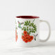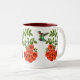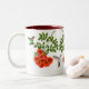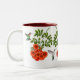 Ursprüngliche Malerei der feinen Kunst der karminroten Throated Kolibris auf Reben durch Designer Carolyn McFann zwei des schnurrenden Katzen-Studios druckte auf einer Qualitäts-Tasse für wilde Vogelliebhaber.