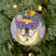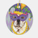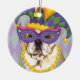 Der niedliche Bulldoggen-Welpe, gekleidet in der festlichen Maske, Spaßvogelhut und Perlen, bereiten für Spaß auf Karneval oder zu jeder möglicher anderen Zeit vor. Großes Geschenk für selbst und Ihre Bulldogge-liebende Familie und Freunde.