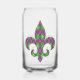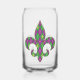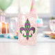 Ein harlequin-Muster von grün und lila verwandelt sich in eine spielerische Raute mit einem Overlay aus goldenen Diamantdächern und Lilie und schafft so ein lustiges und farbenfrohes Muster, das perfekt für alle New Orleans beeinflussten Mardi Gras Feste geeignet ist. Das Muster wird hinter der Silhouette einer Lilie maskiert, um eine lustige letzte Note hinzuzufügen. Diese Glaswaren sind auch in stilechtem Glas und Steinen erhältlich.