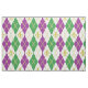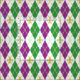 Die hellen lila und grünen Diamanten, die mit Gold-getonten Diamant-Konturen bedeckt werden und die Lilie holen, um sich die Festlichkeit und um die Feiern zu kümmern, die mit einem New- Orleanskarneval verbunden sind, während eine Sahnebasis eine Touch der Verfeinerung diesem Rautenmuster hinzufügt.