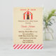 Babypartyeinladung mit Karnevalsthema und rustikalem braunem Hintergrund.