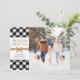 Akzentuieren Sie Ihr Foto mit einem Schwarz-Weiß-Büffel-Karo-Design, mit dem Titel MERRY CHRISTMAS in einem braunen Schriftart aus Kraftpapier mit handgezeichnet Winterblättern und ordentlich mit einem goldbraunen Bogen verbunden. (FOTO-TIPP: Wählen Sie ein Foto mit dem Thema in der Mitte und/oder schneiden Sie es vor dem Hochladen auf eine quadratische Form vor, und es füllt das Foto perfekt aus.) Kontaktieren Sie den Designer, wenn Sie dieses Design modifiziert oder auf einem anderen Produkt haben möchten.