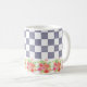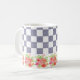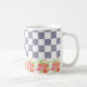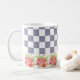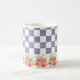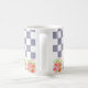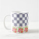 Karo in der Tasse Blüten - die Farben sind blau, rosa, rot und grün.