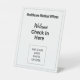 Karo hier Begrüßungslogo QR-Code-Counter-Desk-Pedestal-Zeichen. Ideal für Zähler oder die Beschilderung an der Rezeption, um Kunden, Kunden oder Patienten für eine bessere Effizienz für alle zu sorgen. Fügen Sie Ihr Logo oder Foto in beliebiger Form oder Größe hinzu, oder fügen Sie einen QR-Code hinzu, um den Karo leicht zu bedienen. Das gesamte Design, die Wörter, Farben, der Hintergrund sind auf Ihre geschäftlichen Bedürfnisse und Ihr Branding zugeschnitten. Bitte frag um Hilfe beim Farbwechsel. Geeignet für Service oder berufliche Unternehmen wie medizinische Büros, Tierärzte, Salons, BnBs oder überall, wo die Registrierung erforderlich ist. Step by Step Inspiration Series exklusiv auf Zazzle unter zazzle.com/store/KrisHarty erhältlich, entwickelt von Kris Harty, einem internationalen Designer. © 2023 Kris Harty Step by Step Inspiration
