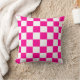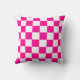 Ein Kissen, das mit einem heißen rosa und weiß karierten Muster entworfen wurde. Passen Sie die Farbe von heiß rosa an, die Größe des Musters unter anderen Optionen.