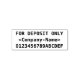 Dieses einfache Design aus Gummi-Briefmarke beinhaltet die Meldung "NUR FÜR EINGANG", zusammen mit einem persönlichen/geschäftlichen Namen und Kontonummer. Es könnte von einem Büroangestellten, einem Büroangestellten oder einer Person genutzt werden, um einem Karo eine beschränkende Zustimmung zu geben.
